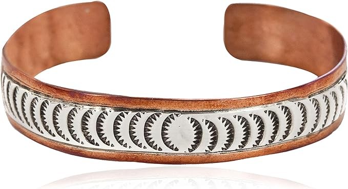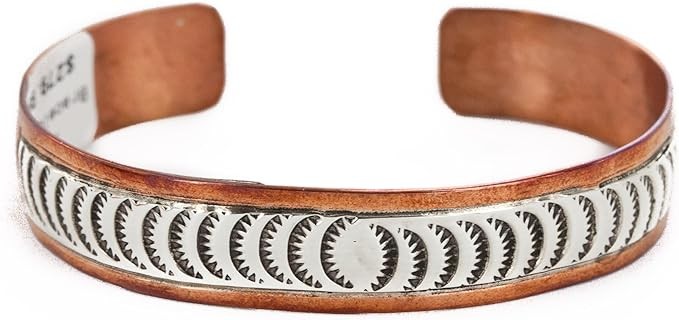 $280Tag Certified Authentic Silver Navajo Copper Native American Bracelet 12721-4 Made by Loma Siiva, 5 inch, metallic stone, gem-free