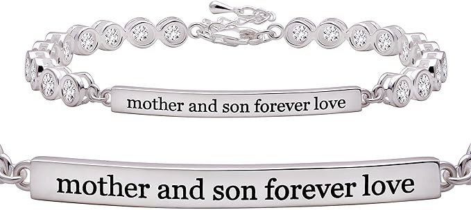 ALOV Jewelry Sterling Silver "mother and son forever love" square-crystal Zircon bracelet, 7.25 inches sterling silver, square-crystal quartz