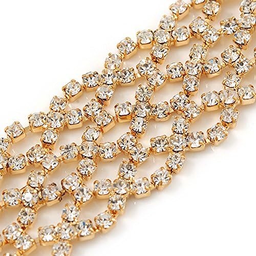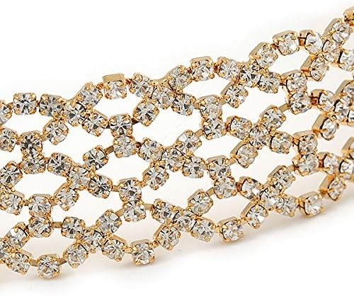 Avalaya 3 rows clear crystal choker, gold metal - 29 cm long /11 cm long, uniform size, crystal crystal gold plated, no gemstones