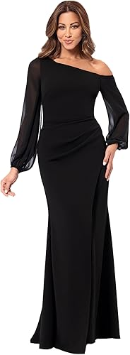 Betsy & Adam Women's Sleeve Off The Shoulder Scuba Long Dress