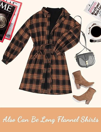 Design: The women's button-up shirt dress can be worn as A drawstring A-line skirt or a long flannel jacket. The tunic dress is a must-have item in every woman's or girl's wardrobe. Casual and loose style, suitable for most body types.