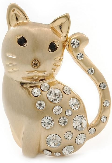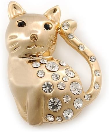 Clear Swarovski Crystal "Cat" brooch brushed gold finish - 45mm long
