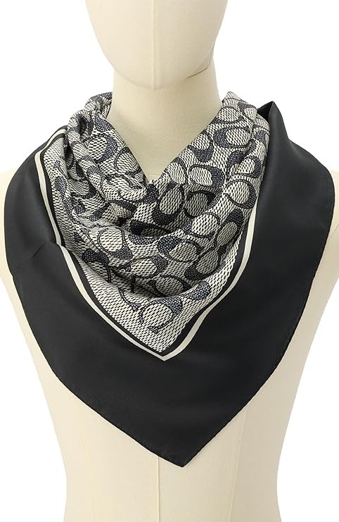 EDITOR'S NOTES: This lightweight silk square scarf is detailed with the signature Coach C motif. It features the Coach Badge and is finished with a solid border.