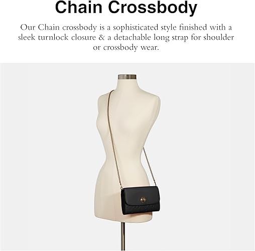 Editors Notes: Our Chain crossbody is a sophisticated style finished with a sleek turnlock closure & a detachable long strap for shoulder or crossbody wear