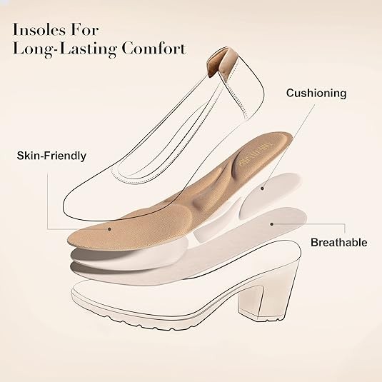 Stable Footing: The 2.8-inch low block heel adds a comfortable boost of height. The TPR outsole provides premium traction & is wear resistant.