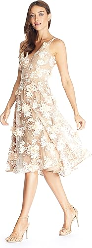 Dress the Population Women's Elisa Sleeveless Plunge Neckline Fit and Flare Midi Dress