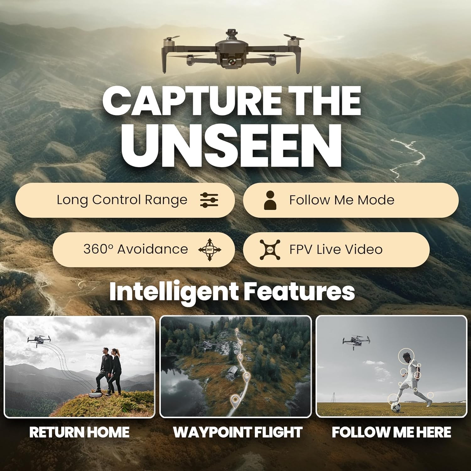 3-axis cardan, 4K super resolution, EIS, and anti-shake: If you plan to record video, you definitely need a 3-axis cardan drone. This makes shooting very smooth and professional, especially now with the addition of the upgraded EIS system! Dual cameras support multiple angles. Pictures/videos are instantly wirelessly transferred to your smartphone album (you don't need a 5G-enabled phone!) . Share your videos easily with 1 button