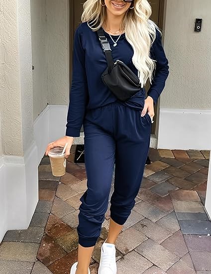 Ekouaer 2 Pack Women's Pajama Set Long Sleeve Top With Jogger Pants Lounge Sets Sleepwear Loungewear with Pockets