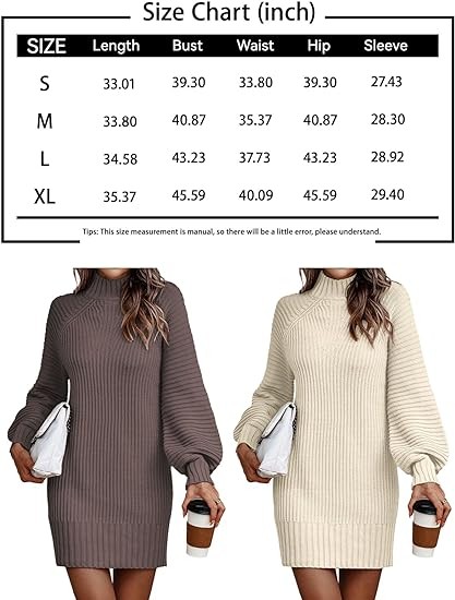Features: Women's fall/winter casual sweater dress, knitted pullover sweater, stand-up collar, long sleeves, balloon sleeves, mini sweater dress, belt-waisted sweater dress, loose fit, cute sweater dress, perfect match for your wardrobe!