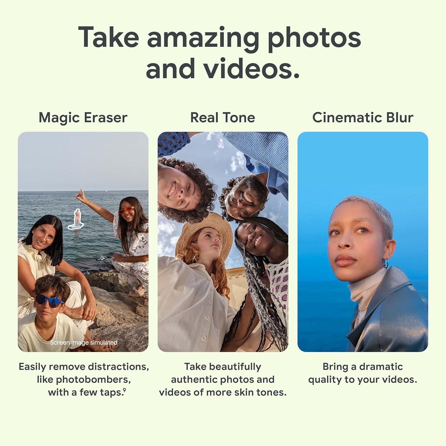 Google Pixel 7 has wide and ultrawide lenses with up to 8x Super Res Zoom[5]; and Cinematic Blur brings more drama to your videos