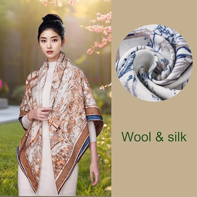 Meticulously hand-hemmed with over 1300 stitches, this scarf reflects exceptional craftsmanship and attention to detail. Its generous size allows it to be styled as a shawl, wrap, or neck scarf, making it perfect for both casual and formal occasions. The combination of luxurious materials, dual-sided design, and intricate patterns adds elegance to any outfit.