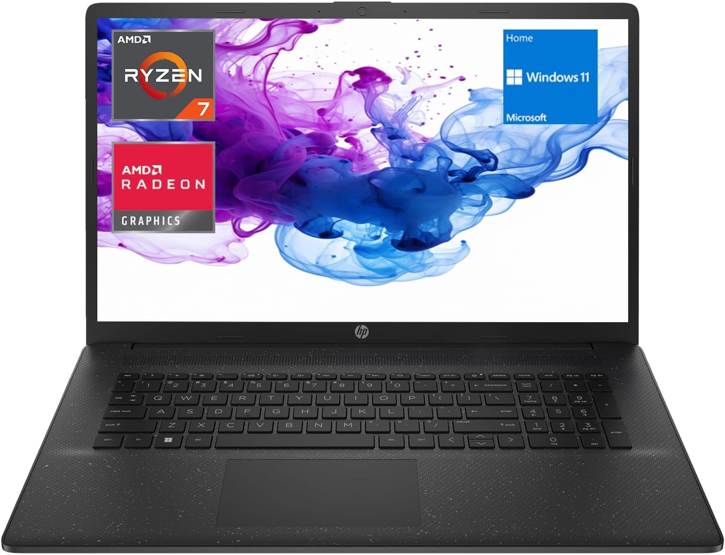 HP Essential 17 Laptop, 17.3" FHD Display, AMD Ryzen 7 7730U, 16GB RAM, 1TB SSD, Webcam, HDMI, Wi-Fi 6, Windows 11 Home, Black