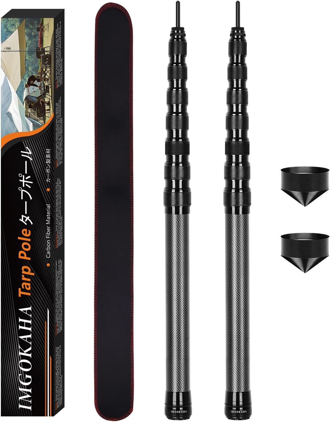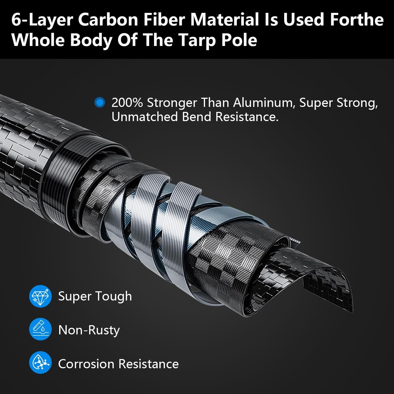 PREMIUM 6-LAYER CARBON FIBER - Made from high density carbon fiber, Imgokaha tent poles offer 200% more stability than metal poles at 40% less weight - for the ultimate strength-to-weight ratio. This premium material ensures exceptional stability for large tarpaulins even in extreme weather such as heavy rain and strong wind, while at the same time feather-light portability for demanding campers.