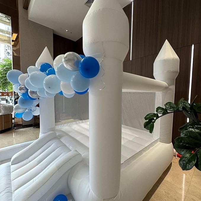 We stand behind the quality of our product and offer a customer guarantee. If you have any questions or concerns, our professional customer service team is available to help you within 12 hours. Get ready for hours of bouncing fun with this white bouncy house castle with ball pit and slide!