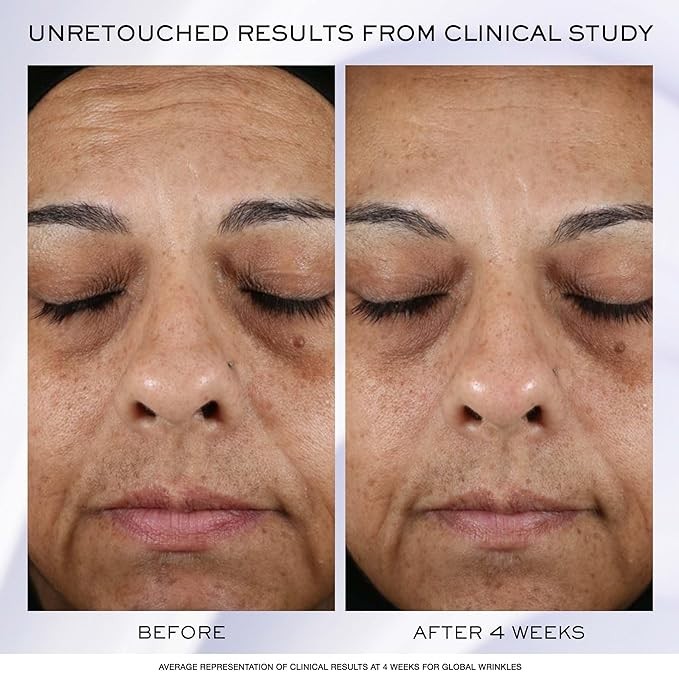 REAL RESULTS: Based on an 8-week clinical study of 45 women, participants saw decreased appearance of wrinkles -21% and fine lines -26% Reduced visibility of dark spots -22% and Improved firmness +38%.