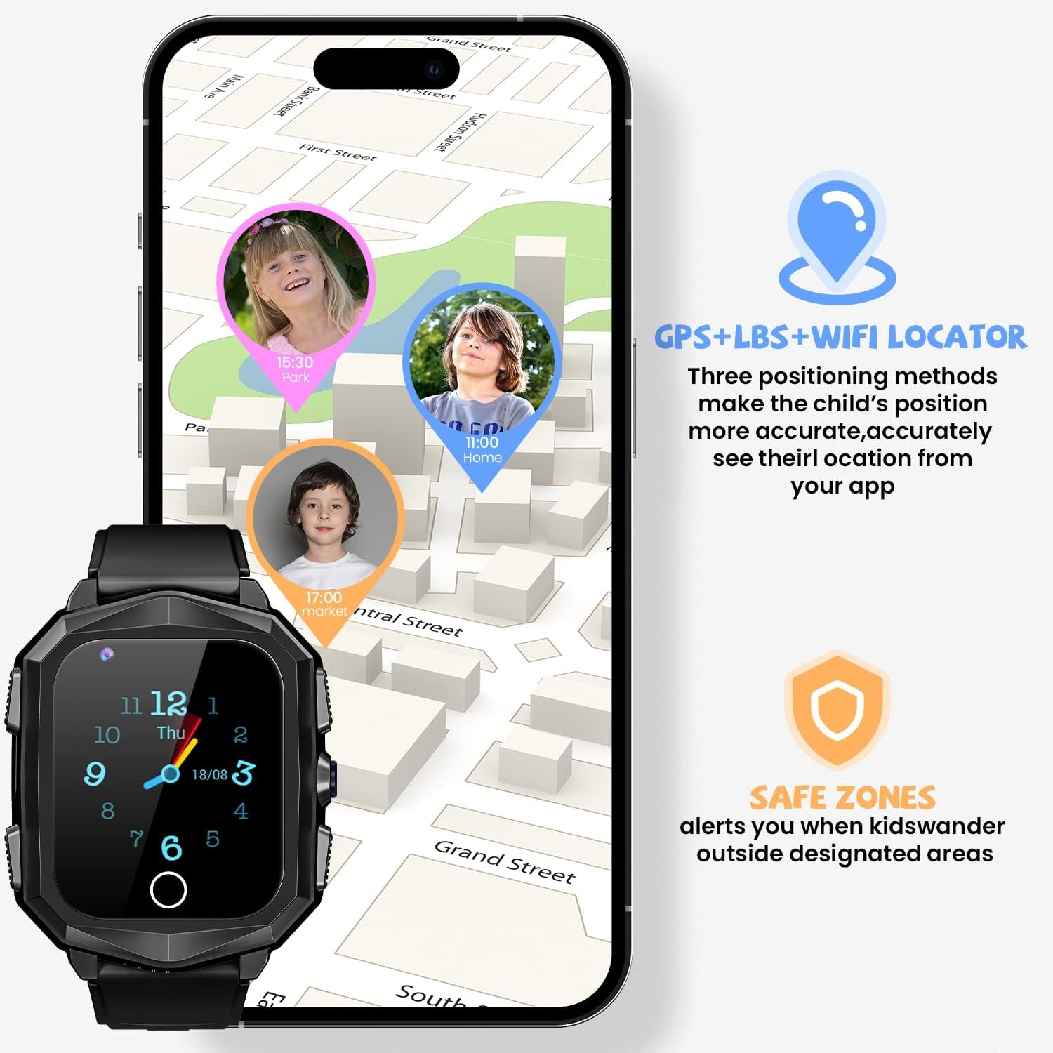 Stay safe - this watch has a built-in Wifi GPS LBS locator that gives you a more accurate location about your child's location, whether the child is walking to school, playing with friends, exercising or anything else, you always know their history and where they are. Parents can set up safe zones in key places, such as home and school, and the APP will send notifications when the child leaves the safe zone, which is the perfect solution to keep the child connected safely