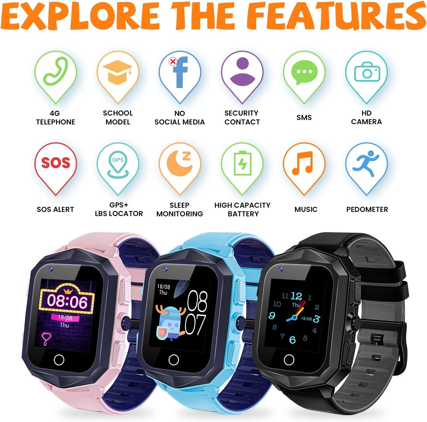 Integrated GPS smart watch for kids - Laredas Smart Watch for kids is the best alternative to mobile phones for kids aged 3-15. Smartwatches can be installed with a SIM card and connected to a WiFi network. It comes with calls, SMS and voice messaging, GPS tracking, HD camera, pedometer and more! This is a 4G GPS smartwatch designed for boys and girls, which is loved by parents.