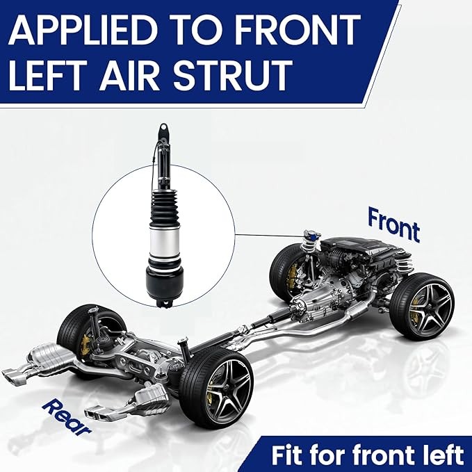 Vehicle model compatibility list: Left front air shock absorber, compatible with 2007-2011 Benz CLS350, 2006-2011 Benz CLS500, 2007-2011 Benz CLS550, 2007-2008 Benz E280, 2000 3-3-20009 Benz E320, 2006-2009 Benz E350, 2003-2009 Benz E500, 2007-2009 Benz E550.