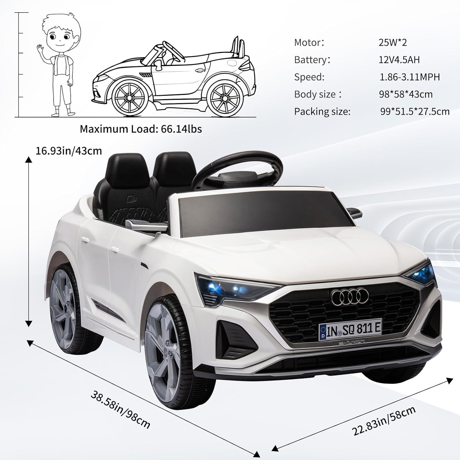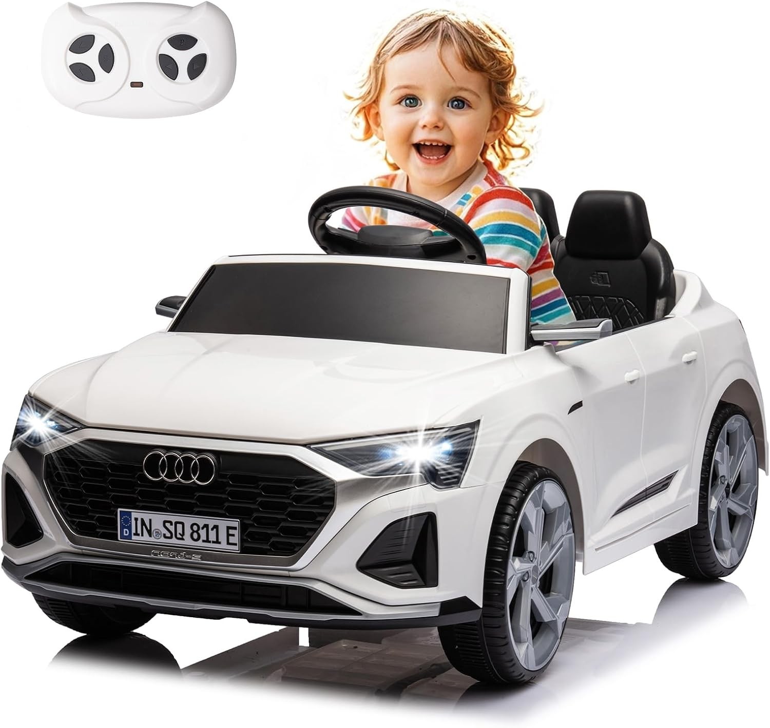 Licensed Audi 12V Children's Electric Ride-On Car, Battery-Powered Electric Toy Car, Suitable for Boys and Girls Aged 3+, with LED Headlights, 2.4GHz Remote Control (White)