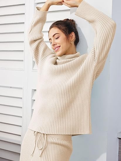 【HIGH-QUALITY MATERIAL】The lounge sets for women feature skin-friendly and buttery-soft fabrics which provide long-lasting warmth and an ultrasoft feel. Thanks to the soft stretchy ribbed knit fabric, the 2 piece outfits for women perfectly suitable for most figures