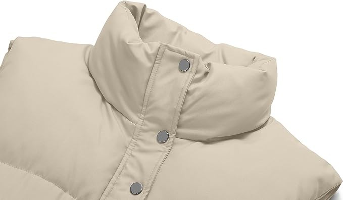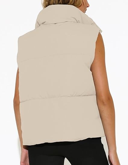 Design:Women winter puffer vest,full zip,stand-up collar,zipper,cropped sleeveless design,button down,front zipper closure,adjustable drawstring hem,side pockets,solid color,warm and soft,lightweight,winter vest for women.