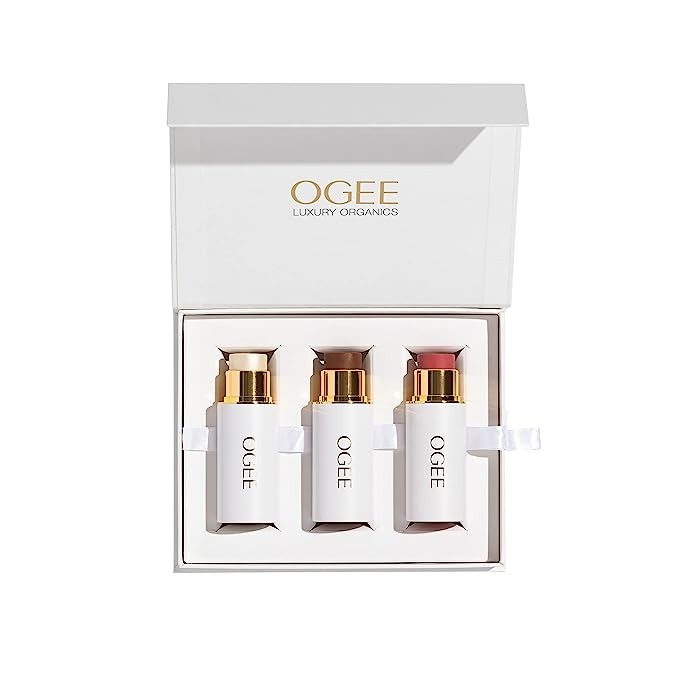 Achieve a natural, no-makeup look with Ogee Face Stick Trio, a versatile makeup collection that nourishes your skin while enhancing your features.