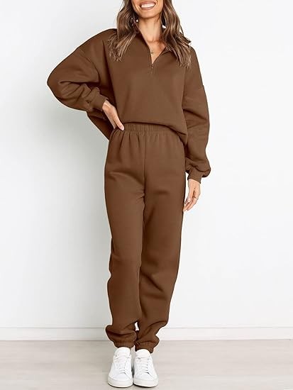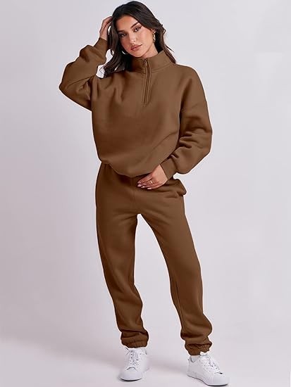 STYLE - Sweatsuits for women set, half zip up pullover women, oversized pullover, quarter zipper sweatshirts, sweat suits for womens 2 piece, drop shoulder collar, 1/4 zip long sleeve sweatshirts, fall outfits for women, winter fashion clothes, aesthetic clothing, y2k fleece casual style, teen girls fall y2k clothes.