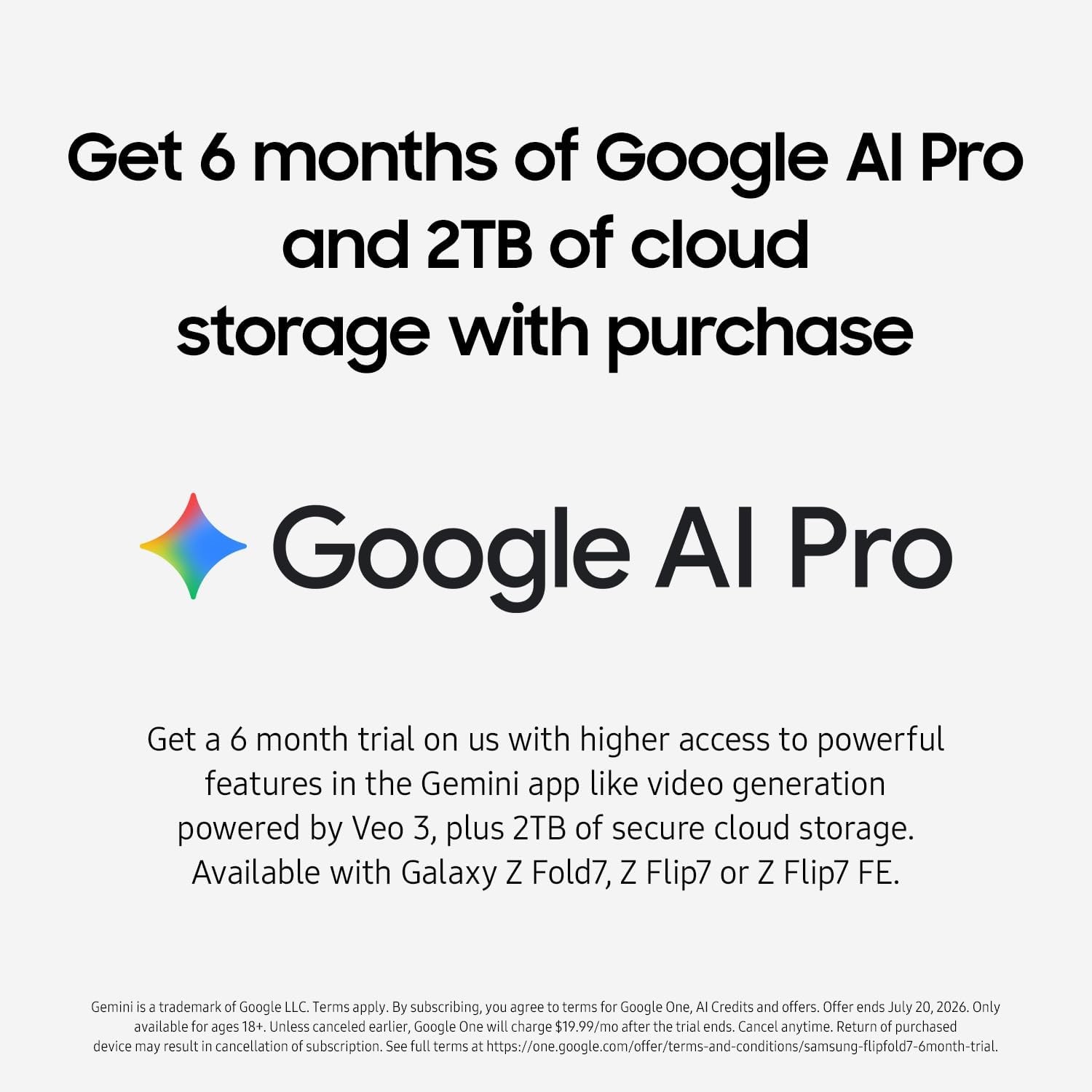 • OPEN LESS. DO MORE: With Gemini Live and your favorite apps on FlexWindow, Galaxy Z Flip7 FE does more before you even open it.¹
