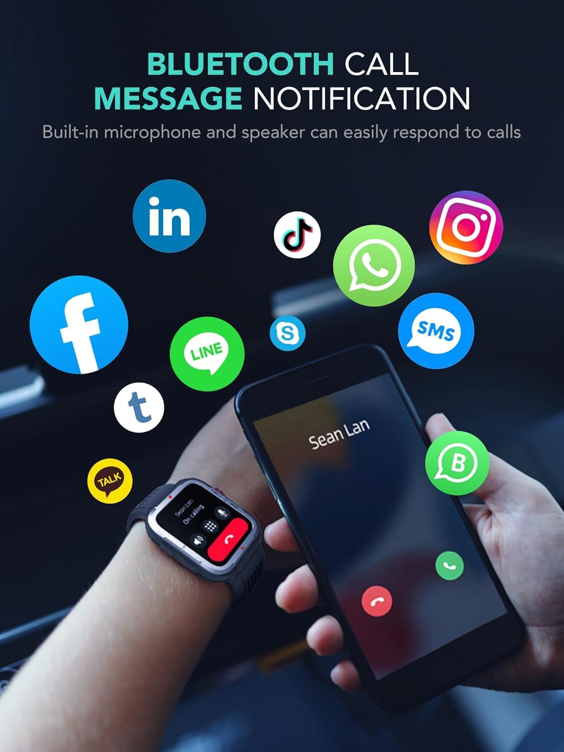 Built-in Alexa - Amazon Alexa Men's military smartwatch lets you control your phone without having to. Just by talking to your watch, you can ask questions, control music, check the weather, set alarms, timers, and more, all from your wrist for easy use with Alexa!