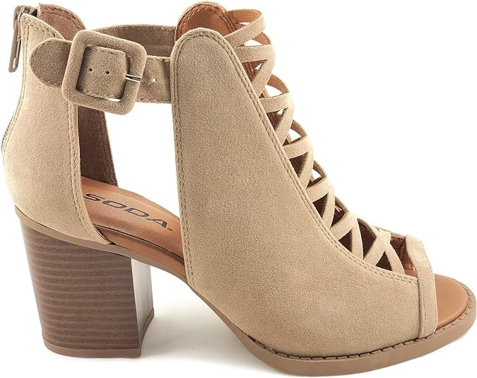 Soda ARAN ~ Women Open Toe Crisscross Straps Back Zipper High Heel Fashion Sandal with Adjustable Ankle Strap