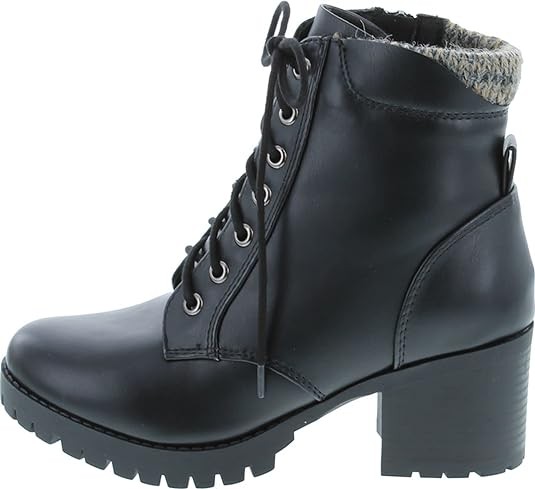 Combat Boot with Lug Sole Platform and Chunky Heel 2.5 Inches