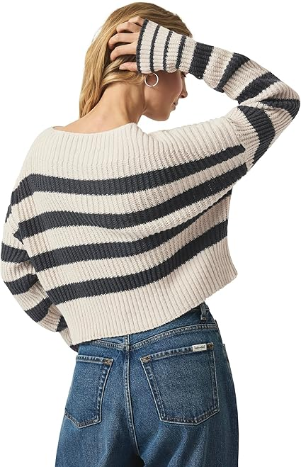 • The Olivia Stripe Sweater has an ultra-chic silhouette with its boatneck and a rich ribbed texture made from 100% cotton.