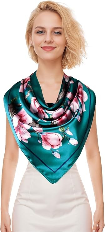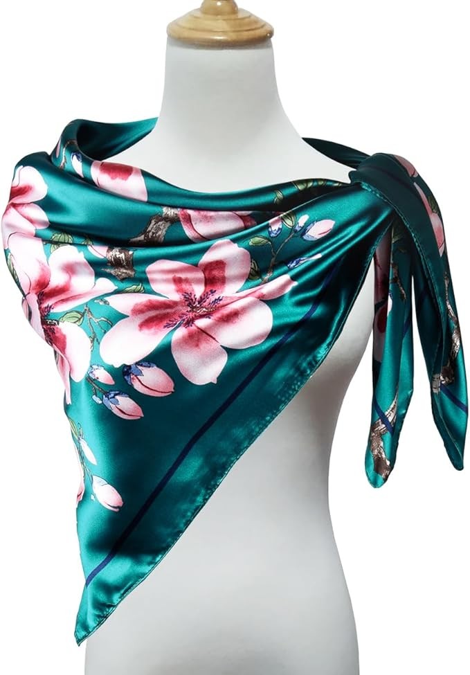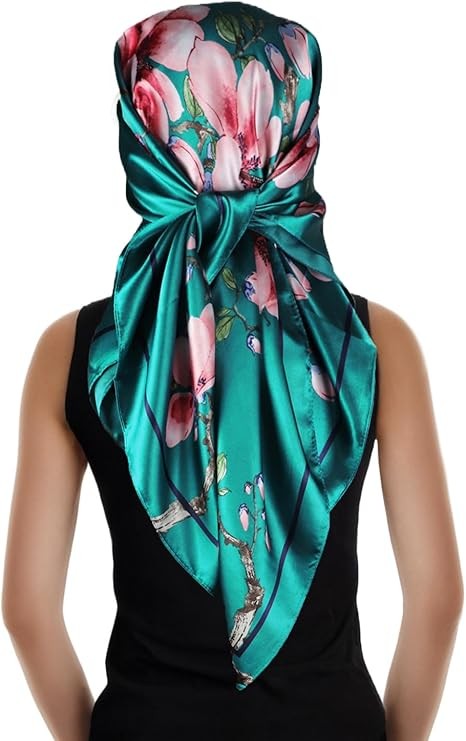 vabovin Silk Like Head Scarf for Women Satin Printed Bandana for Hair Wrapping Fashion Accessory 35 Inch Square Hair Scarf