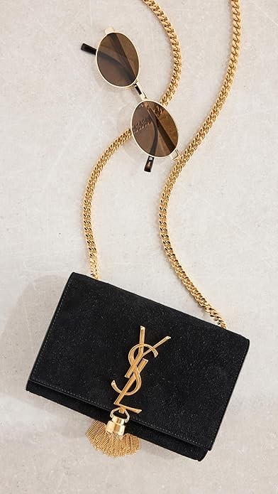 Previously owned: Gentle wear should be expected and reinforces the history of this heritage piece, Gold-tone YSL logo emblem and chain tassel